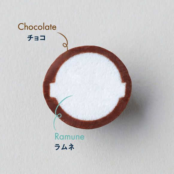 昔ながらのザクザクラムネ菓子を、なめらかな薫るチョコレートで包み込みました。