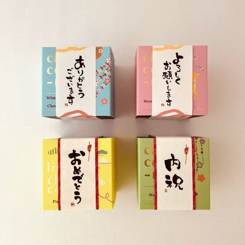 ショコネ、リリショコネ、ショコミ、カクテルショコネなどからお好きな味を1点と 熨斗(のし)紙の種類をお選びください。