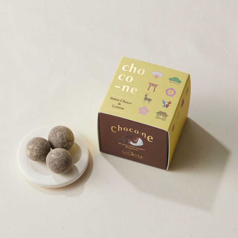 昔ながらのラムネ菓子を、口どけの良いチョコレートで包み込んだchoco-ne(ショコネ)のブラックチョコ&レモン味。