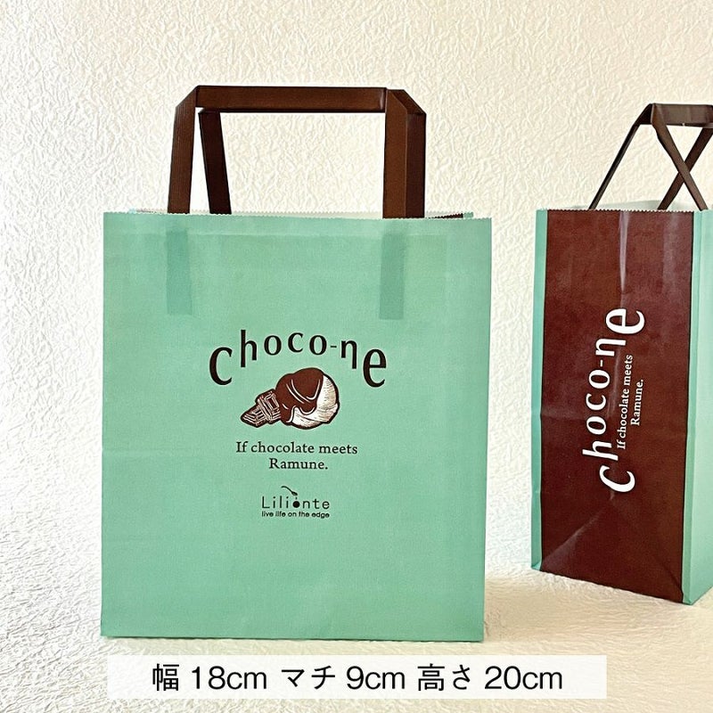 ショコネ専用リリオンテオリジナル手提げ袋。 横幅18cm 奥行9cm 高さ20cm