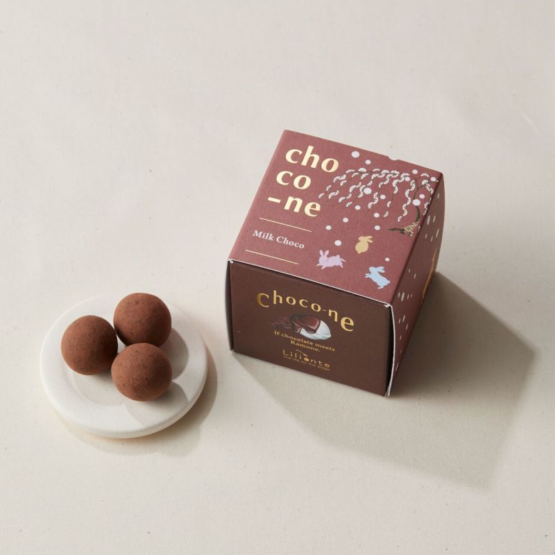 昔ながらのラムネ菓子を、口どけの良いチョコレートで包み込んだchoco-ne(ショコネ)のミルクチョコ味。