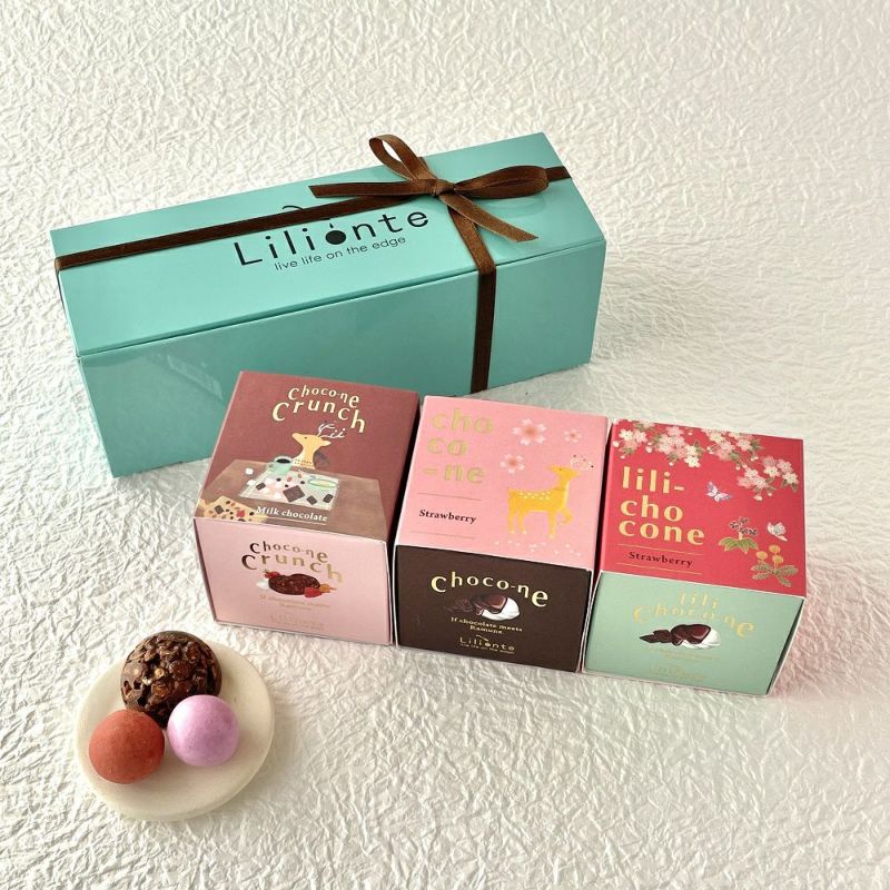 ●ショコネ(ラムネ×口どけチョコ):いちご、ミルクチョコ、大和ほうじ茶、ホワイトチョコ&チーズケーキ、ブラックチョコ&レモン、大和抹茶 ●ショコネクランチ(ラムネ×クランチチョコ):いちご、ミルクチョコ ●カクテルショコネ(ラムネ×お酒チョコ):ラムスウィート